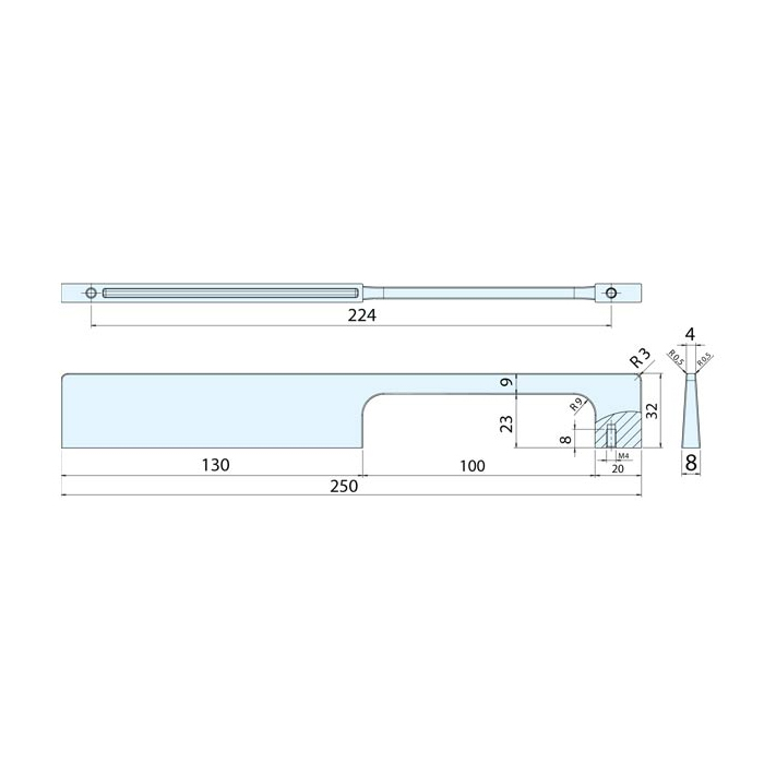 Sugatsune America SLES-Z002-224/WB Zinc Tapered Pull, 8-13/16" Center to Center - White Bronze Finish