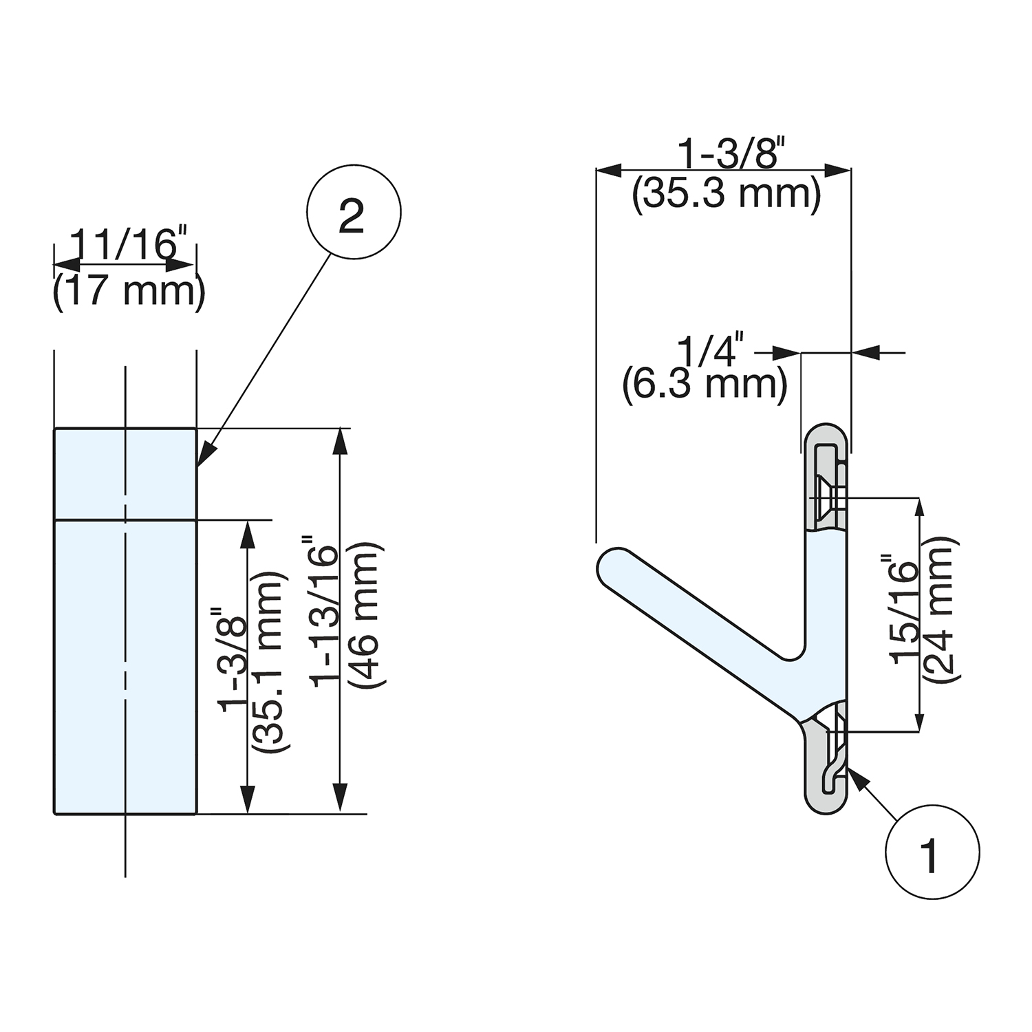1-7/8" Length, 1-5/16" Height, 5/8" Width