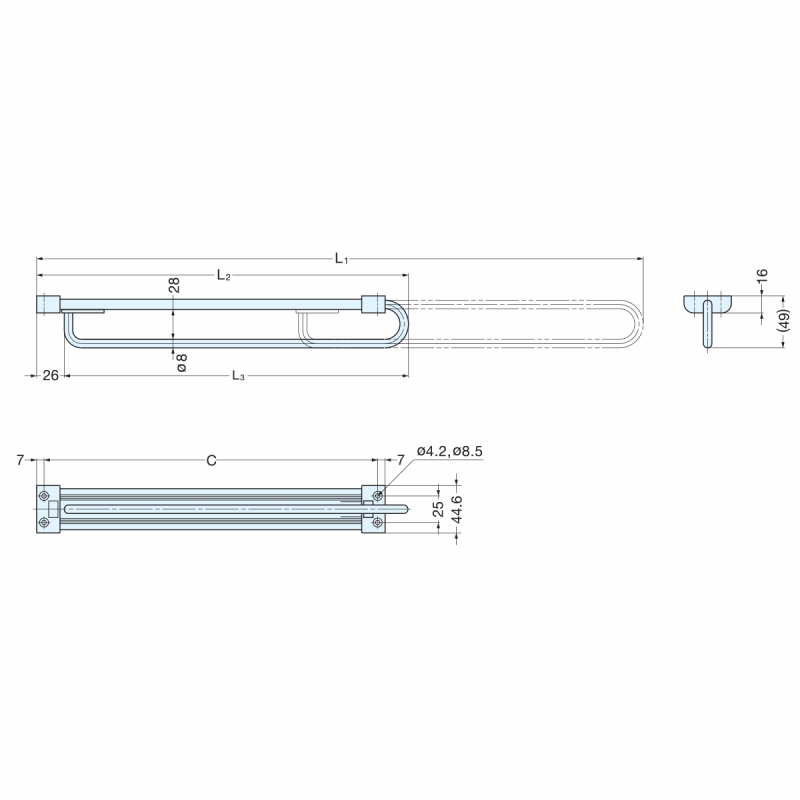 Sugatsune America SLUH-450 28-3/8" Extension Hanger - Chrome / Black Finish