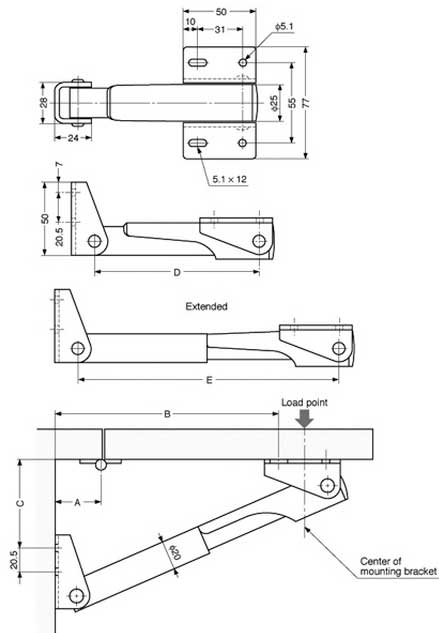 Sugatsune SL38845-25 Aluminum Folding Bracket Drop Leaf Support 132 Lbs. - 1 Each