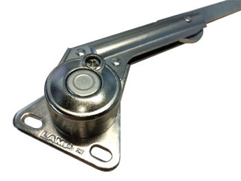 For top-opening lids, holds door in both closed position and open at 70 or 105 degree angles, depending on positioning.