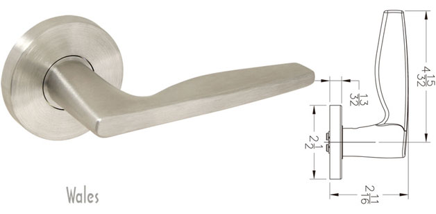 TLL-L 2-3/8" Wales US14 Designer Series Low Rose Style 2-3/8" Backset Passage Function Tubular Lock with Wales Stainless Steel Lever - Polished Nickel