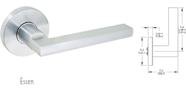 TLP-L 2-3/4" Essen US26 Designer Series Low Rose Style 2-3/4" Backset Privacy Function Tubular Lock with Essen Plated Lever - Polished Chrome