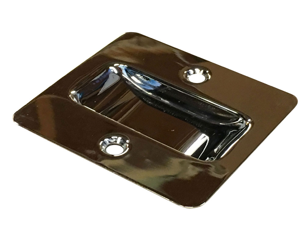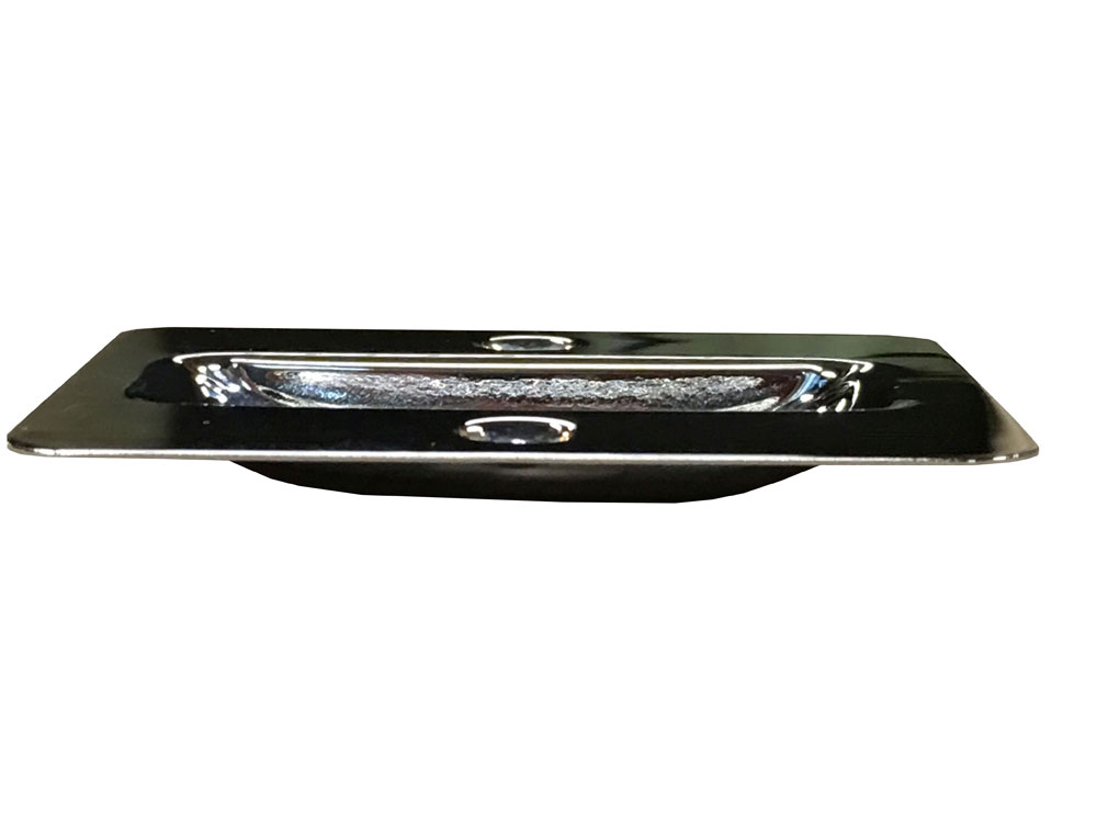 Flush cup pull for sliding doors. Available in several finishes.