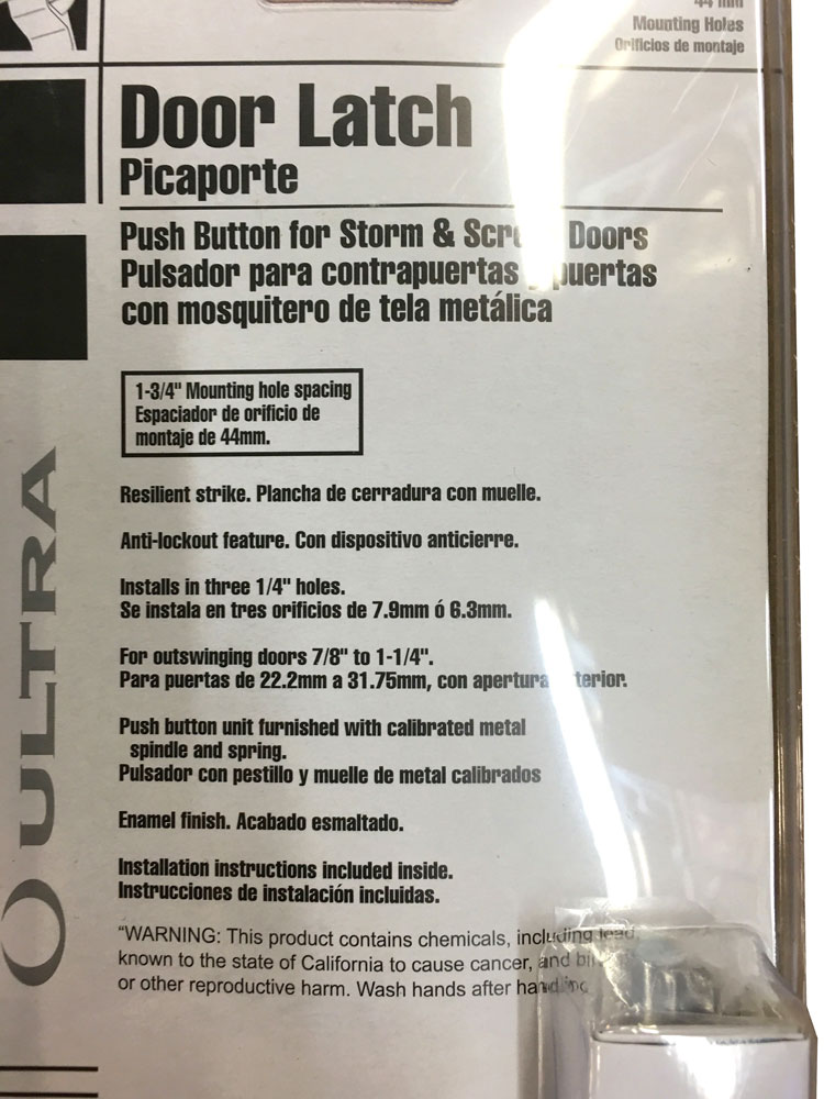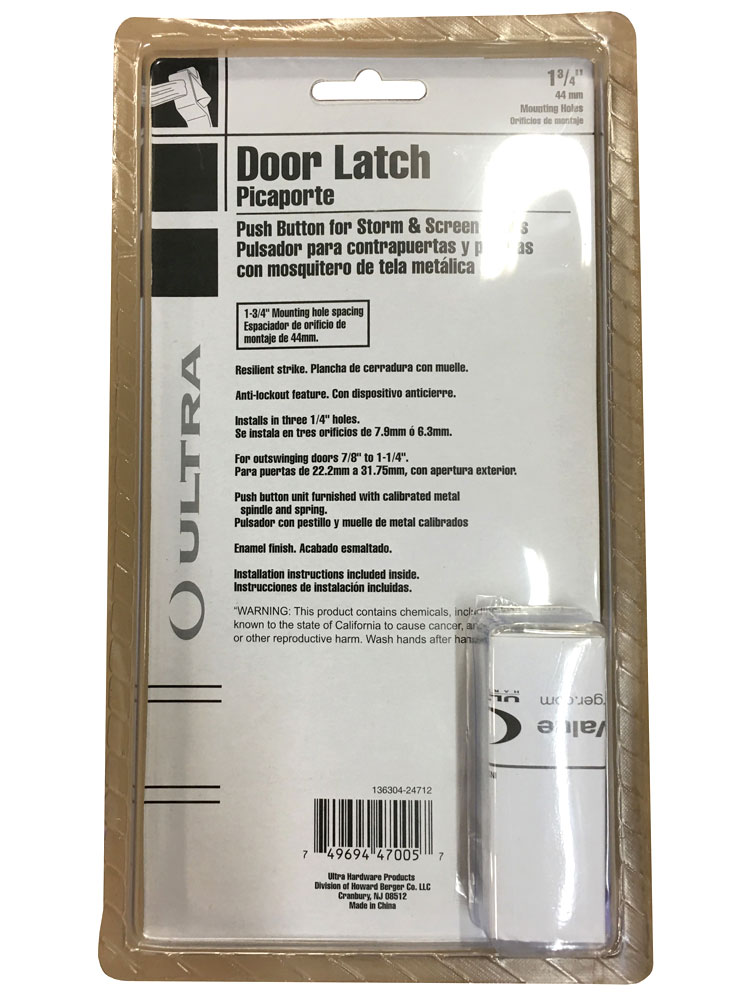 Ultra Hardware 47005 Storm Door Push Button Latch - Resilient Strike - Black Finish