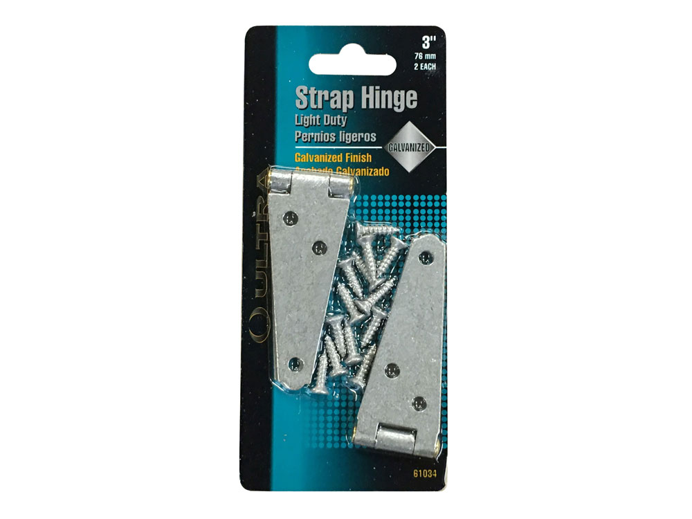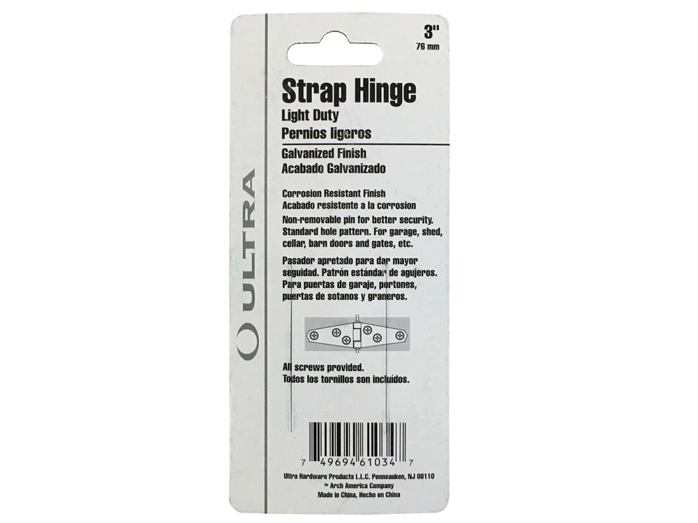 Ultra Hardware 61034 Card of 2 3" Light Duty Strap Hinge - Galvanized Steel