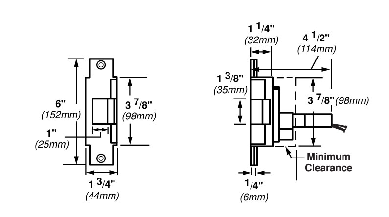 Closed back electric strike for use with mortise locks without deadbolt or cylindrical locks on 1-3/4" thick double door (hollow metal, aluminum or wood ) applications.
