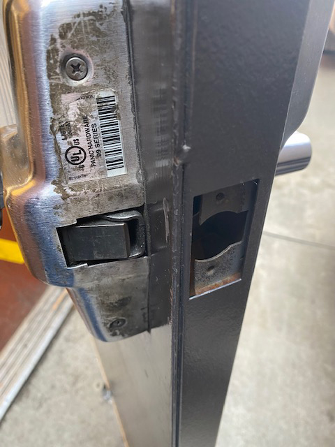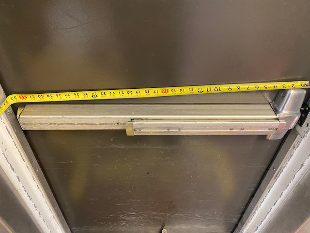 - Exit hardware and strike must be properly mounted to ensure that the strike is NOT too close to the latch bolt when closed and that the trim can move the bolt past the strike to allow entry without mechanical interference