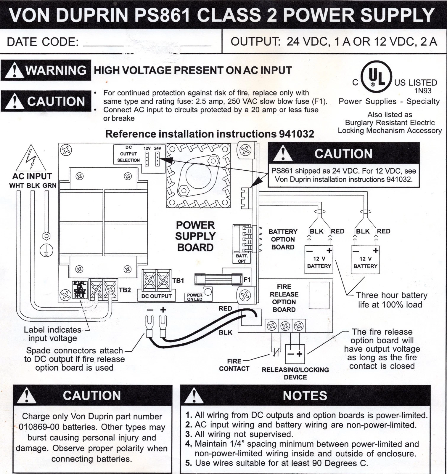 Von Duprin PS861 Circuit Board only 12/24VDC-1A