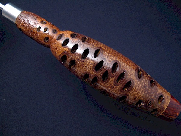 In woodworking applications, banksia pods range in size from 4? to over 12? long, with a diameter ranging from 2.5? to 5? wide. Just under the exterior of the pod, there is an area of reddish brown fuzz-like material. Further toward the center is the denser, wood-like core. The seed cavities can reach well over halfway into the pod, giving turned projects a very unique appearance and texture. Some woodturners fill these voids with resin or other colored inlay materials, while others choose to showcase the openings as a prominent design feature.