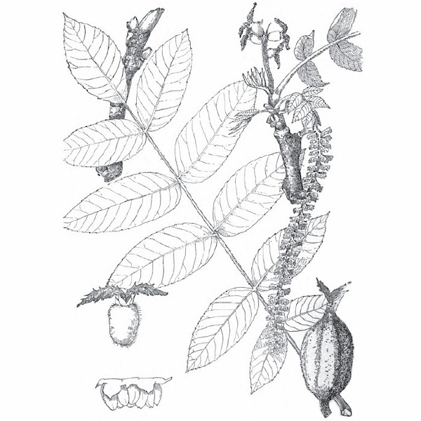 Butternut trees can be distinguished from Black Walnut by looking at its fruit: Butternut’s fruit is more oblong or oval shaped, while Walnut is nearly round; (see illustration below). The commercial potential of Butternut’s edible fruit (nuts) is generally regarded as being more valuable than its lumber. (Butternuts are not related to Butternut squash, which comes from an unrelated plant—Cucurbita moschata.)
