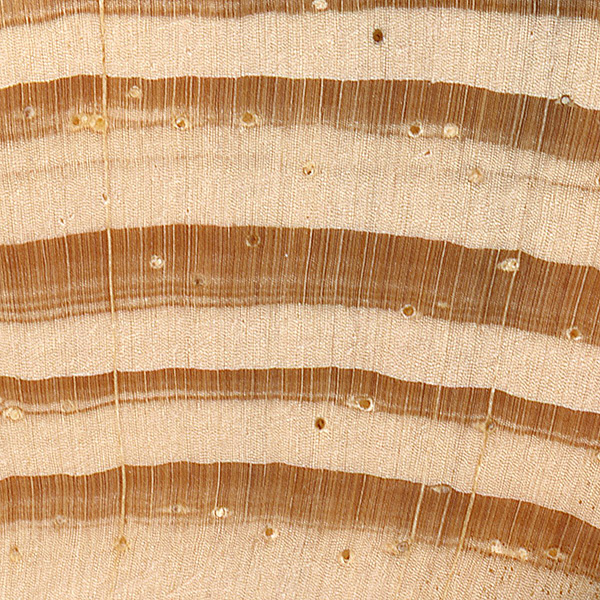 Color/Appearance: Heartwood is light reddish brown, demarcated sapwood is pale yellow to nearly white.