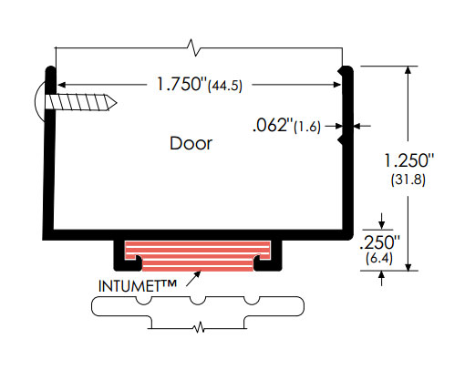 Sill Protection Sweep Door Bottom, Length: 66", Aluminum, Height: 1.25", Width: 1.75", Insert: Intumescent