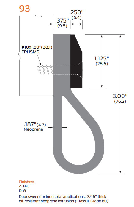 Door sweep for industrial applications, 3/16" thick oil-resistant neoprene extrusion, Length: 96", Holder: 1/4" thick Mill Finish Mill Finish Aluminum